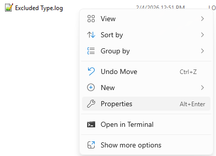 - Right-click on a file that is not included in your backup and select Properties.