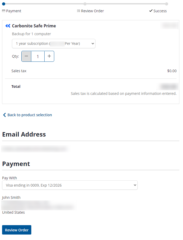 - When the subscription and payment information look good please click Review Order