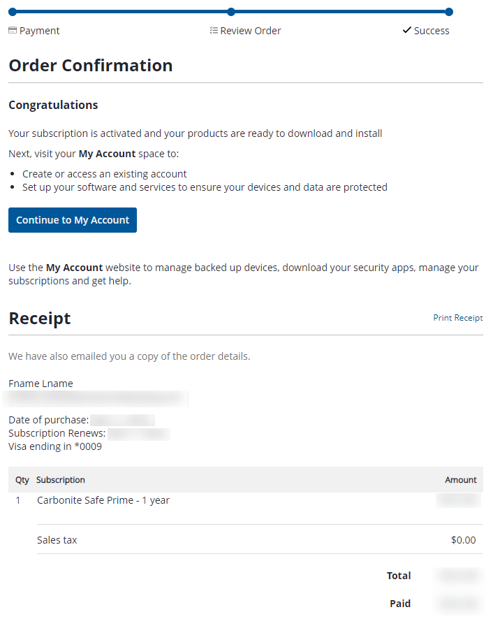 - After you successfully purchase Carbonite, Carbonite will send you an email with your order details.
