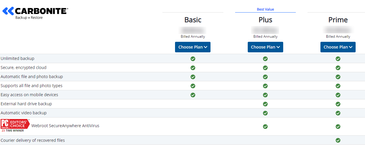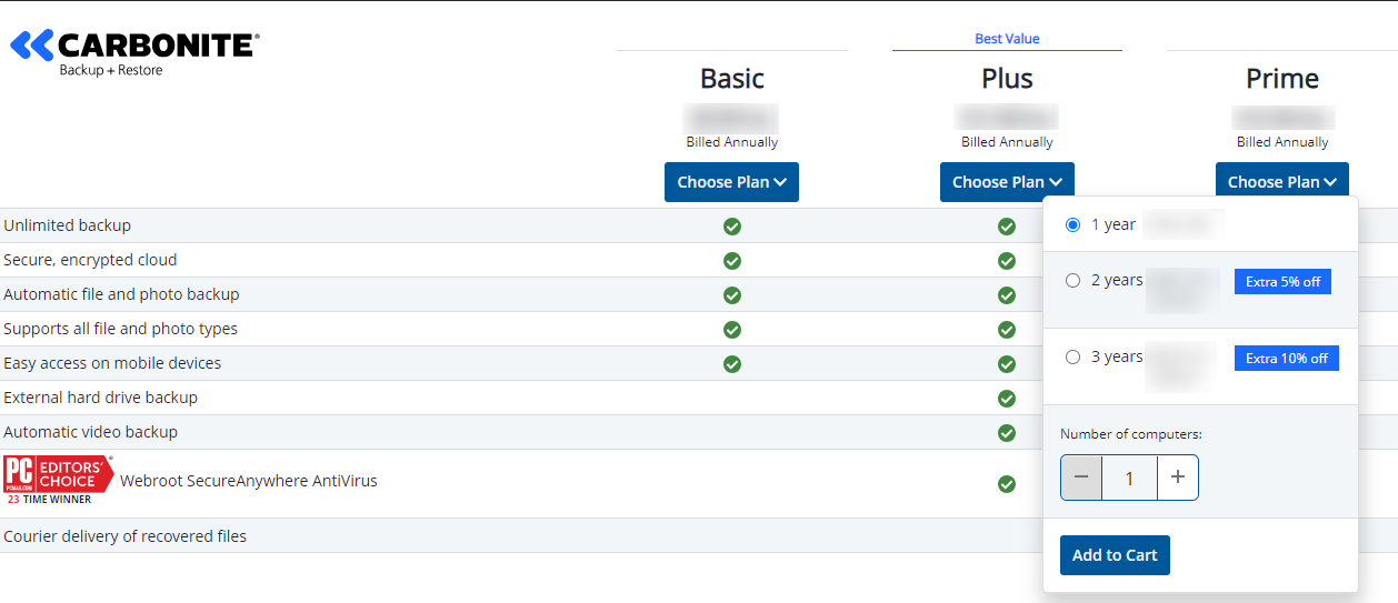 | Price Per Computer | Carbonite Safe Plans | ||