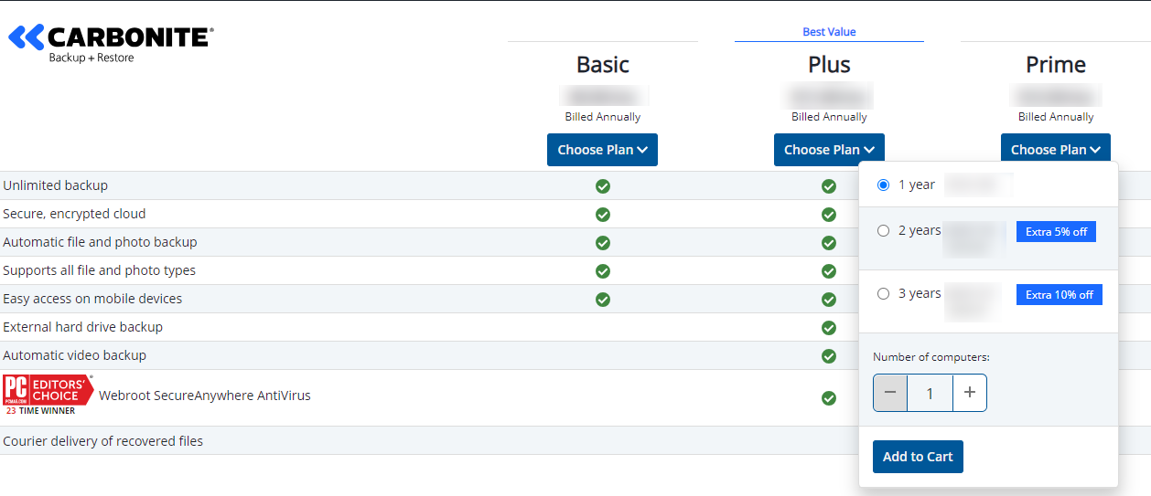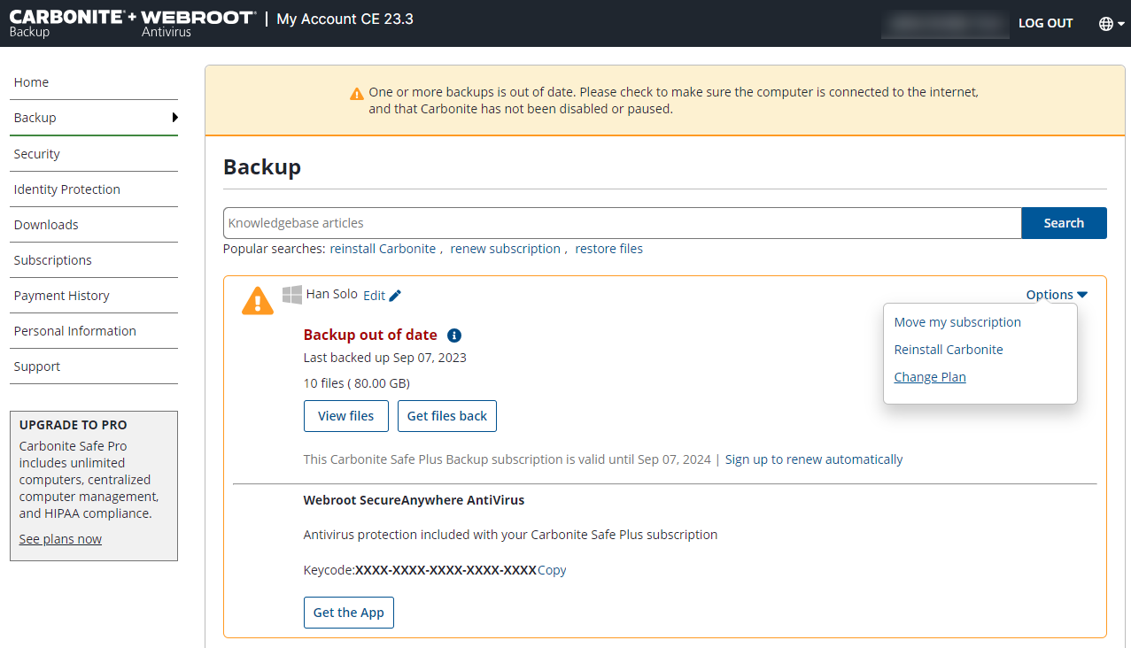 You can upgrade your existing Carbonite Safe Basic or Plus subscription to take advantage of new features. When you upgrade, any unused time from the previous subscription will apply to your upgraded subscription as a discount.