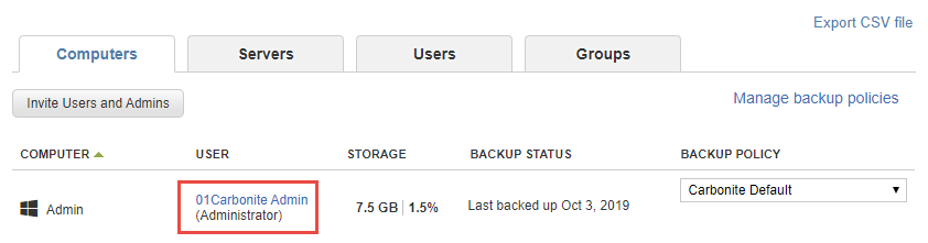 Administrators are now able to view and access the backed up files of other users. To do this, click on a user name and select View Backup from the user's page.