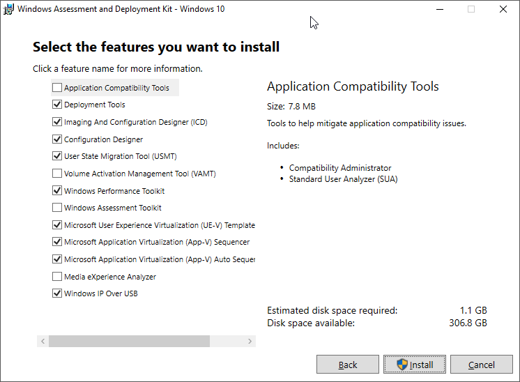 There will then be a list of features for you to install. Please ensure that Deployment Tools is selected. Click Install to continue.