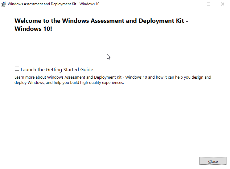 After the install has completed, please click Close and return to the Recovery Media builder.