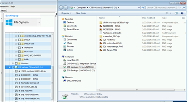 In this example, we have placed some files in the shared folder on the NAS. You can see the files in both Windows Explorer and in CSSB.