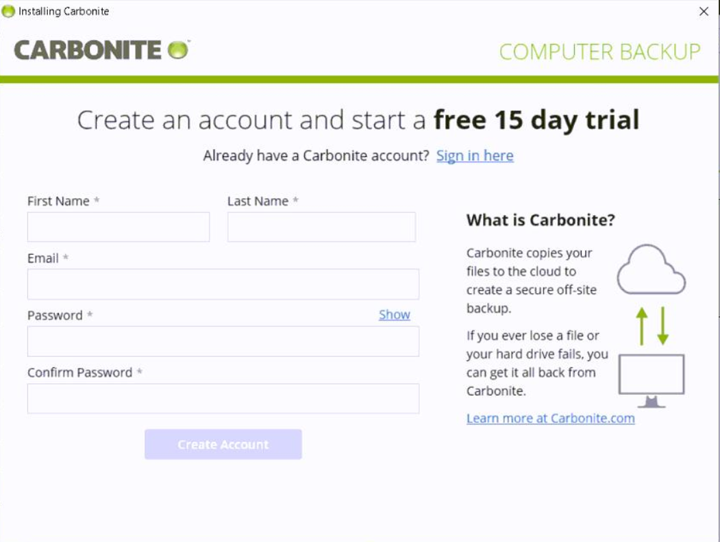 Please note: Carbonite will not be able to install or run on devices using the M series of processor if Rosetta is not installed.