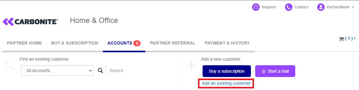You can request to associate an existing Carbonite customer through the Partner Portal.